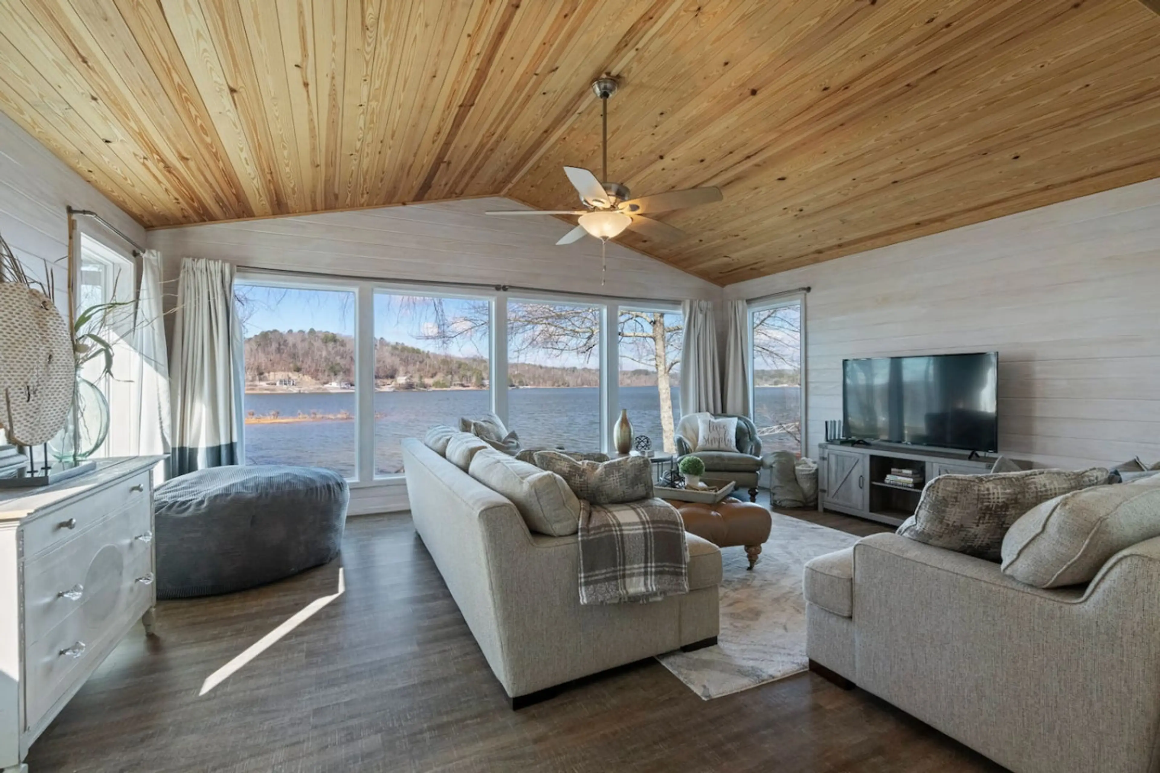 🌊 Lakefront Retreat w/ Dock, Fire Pit & Stunning Views | Sleeps 9 Wake up to panoramic lake views from nearly every room and spend your days swimming off the dock, relaxing on the deck, or gathering around the fire pit as the sun sets over Smith Lake. This home is designed for families and small ...
